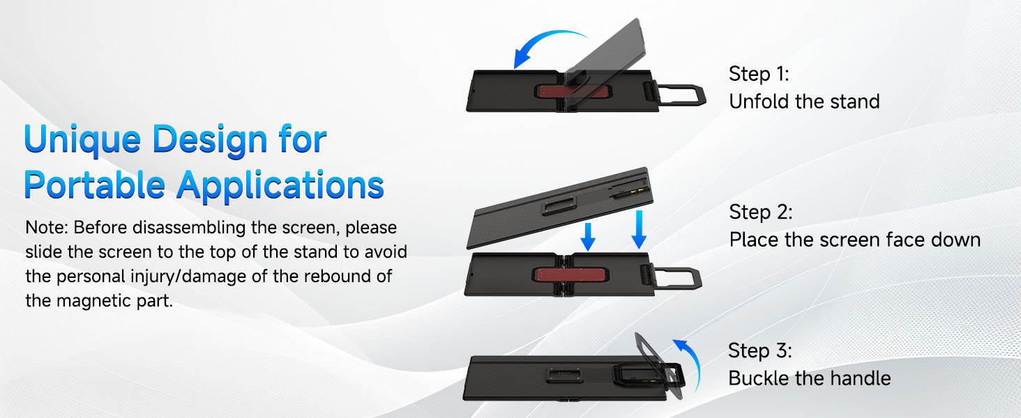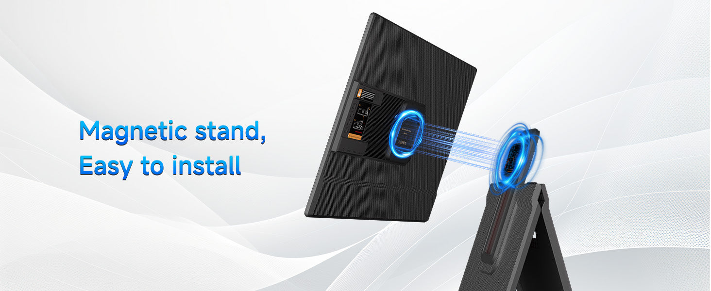 Ergonomic flexibility anywhere! Detachable magnetic stand offers height adjustment (sit/stand friendly) and 90° rotation for portrait mode (coding/reading). 75x75mm VESA holes enable wall/arm mounting. You can also place the external monitor with pegboards to create your personalized workspace.
