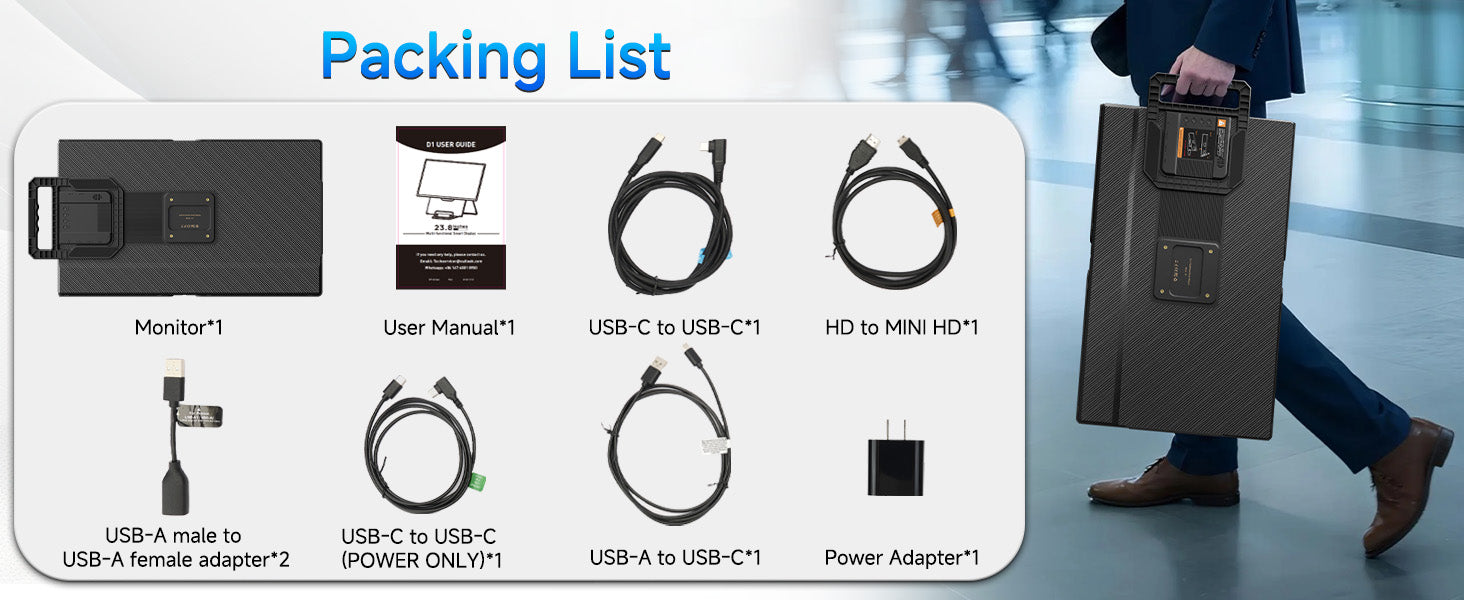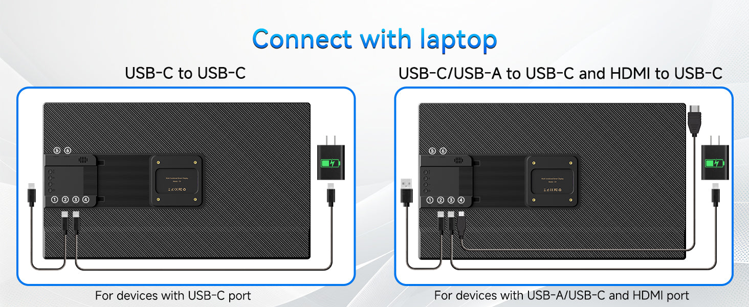 This laptop screen extender monitor portable works with Windows/macOS/Chrome/Linux, PS5/Xbox/Switch & USB-C phones! Connect via HDMI or USB-C video. Requires included power adapter – use as a desktop display for Mac Mini or extended laptop screens effortlessly. (The adapter and cables are included in the package.)
