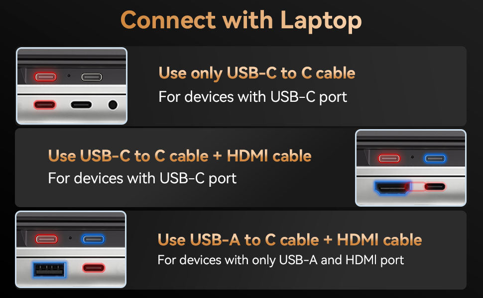 If your device does not have an HDMI port or type-c for video output,you will need to buy our dedicated H5 Cable to install the built-in driver to activate screen extender.If you are not sure whether your computer model can be used, please contact us before purchasing.